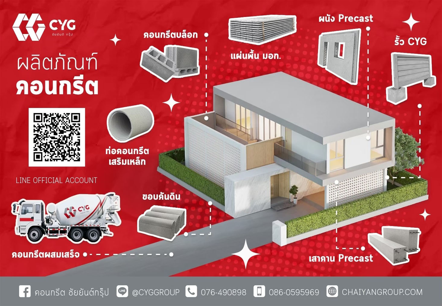 • ผลิตภัณฑ์คอนกรีต (เสาเข็ม,ท่ออัดแรง,แผ่นพื้น,แผ่นผนัง,บ่อ,ท่อพัก)